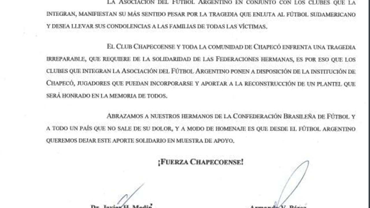 Clubes argentinos também se disponibilizaram para emprestar jogadores para Chapecoense